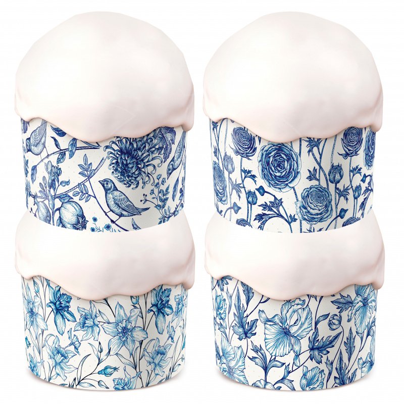 Представляют собой одноразовые формы из специальной бумаги с рисунком для выпечки и последующего хранения куличей. Формы выдерживают температуру выпечки до +230 С. Рекомендуемая температура выпечки куличей - +170-180С. Не требуют предварительной смазки.