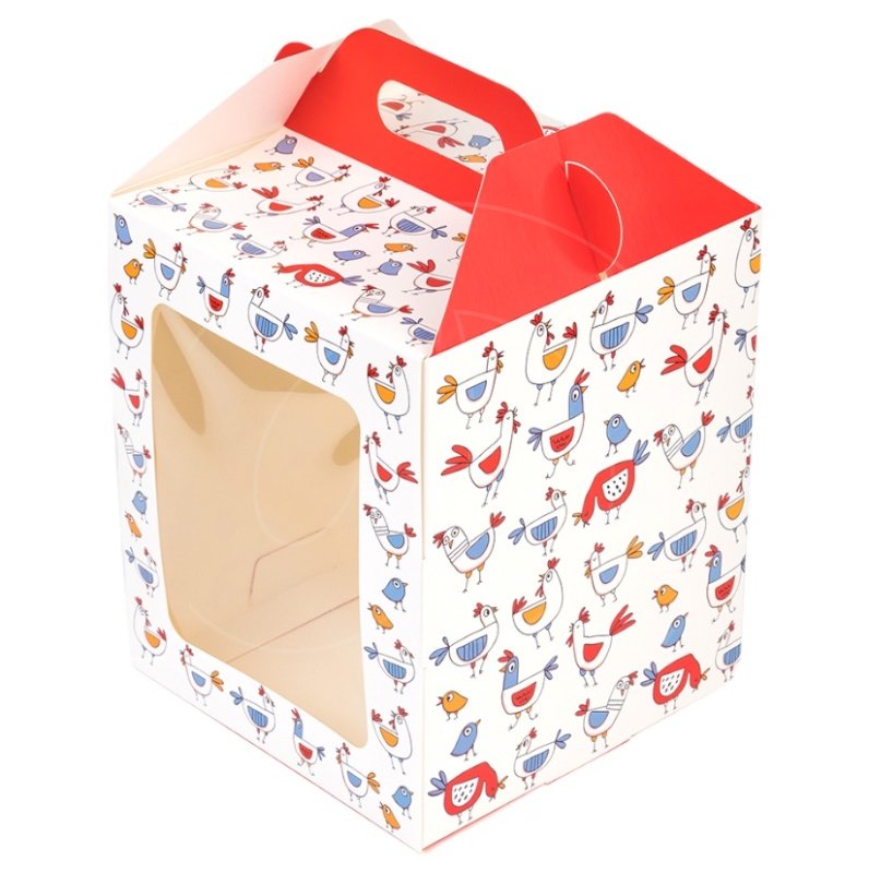Коробка для кулича с фронтальной загрузкой "Птички" 15х15х18 см