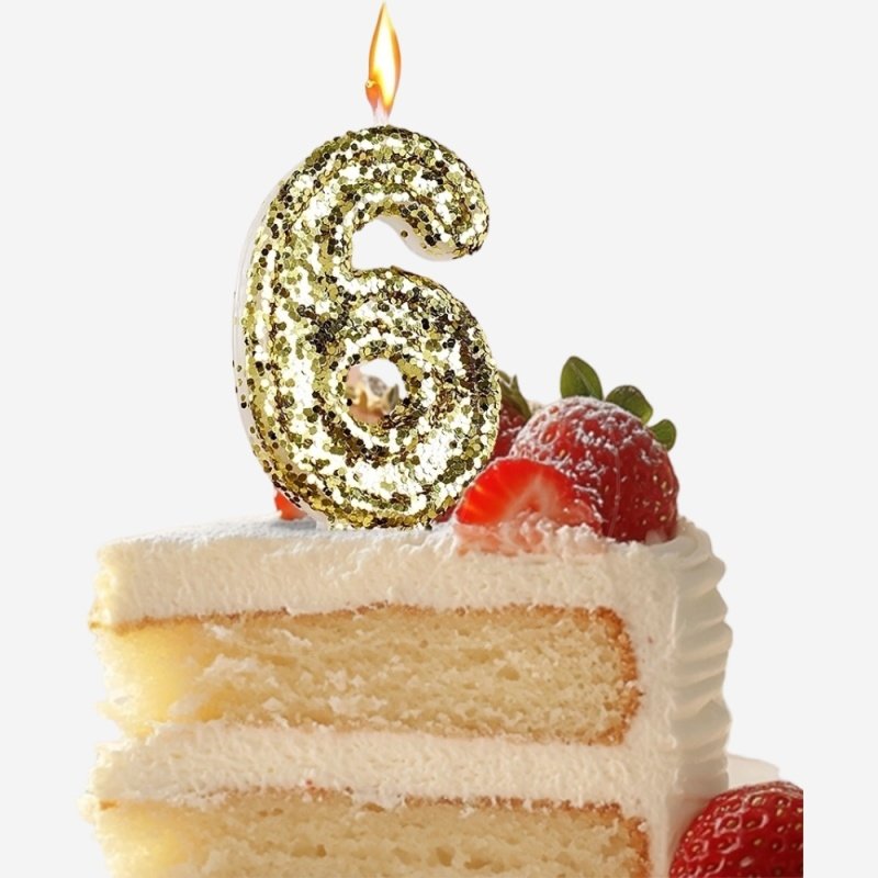 Свеча декоративная Цифра "6" Золотые пайетки