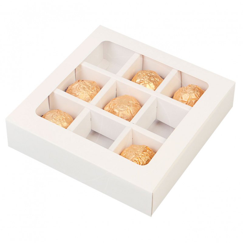 Доставка Коробка на 9 конфет раздвижная белая 13,7х13,7х3,7 см из магазина в вашем городе: